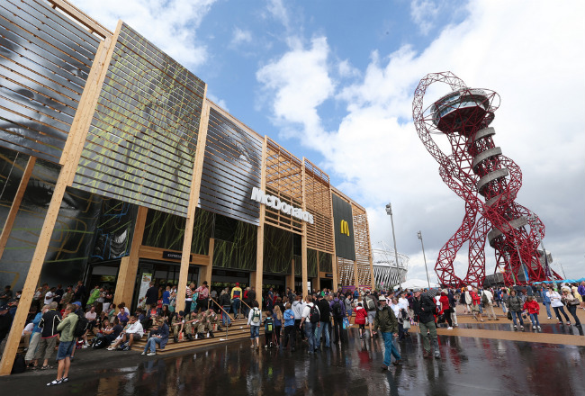 Самый большой Макдональдс в мире был открыт в Лондоне в преддверии олимпиады 2012 года. Двухэтажное здание площадью 3 тысячи кв. м было оборудовано 45 кассами, способными обслуживать около 2,5 тысяч посетителей в час.