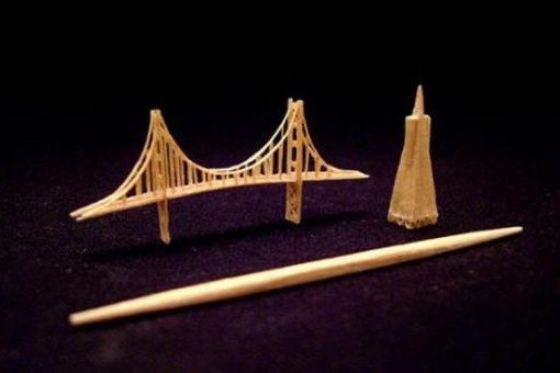Уму не постижимо какие интересные произведения искусства можно делать из предметов, которыми мы пользуемся каждый день. Американец Стивен Бекмен из Сан-Франциско делает невероятные поделки из зубочисток. Он использует их для сборки всевозможных маленьких зданий и инженерных сооружений.