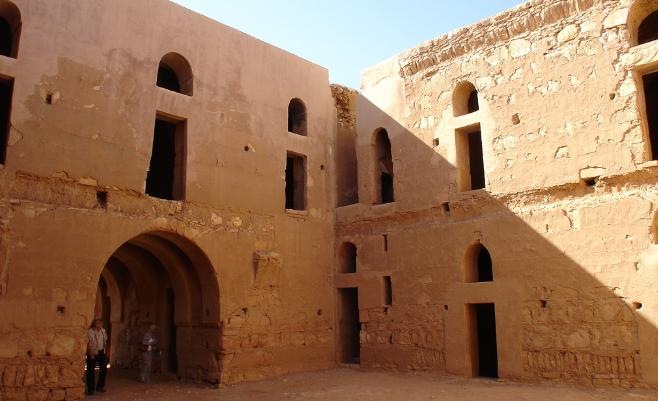 Замок возвышается над окружающей пустыней, т.к. построен на холме высотой 15 метров. Само здание представляет собой квадрат, каждая сторона которого длинной 35 метров, с небольшими выступающими башнями и закругленным входом с южной стороны. Внутри постройки большой внутренний двор, вокруг которого на двух этажах располагаются 60 гостевых комнат.