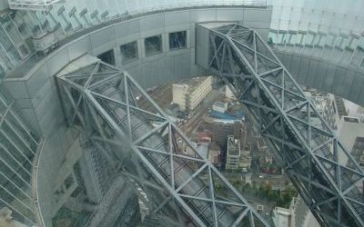 Еще одним «эскалаторным» здоровяком является японский эскалатор небоскреба Умеда (Umeda), который расположен в городе Осака. Его длина 173 м. Небоскреб Умеда состоит из 2 башен, именно их и соединяет этот большой эскалатор.