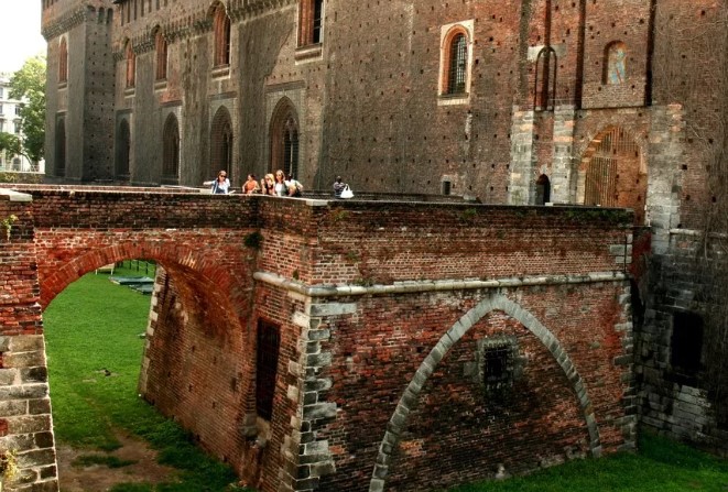 Ранее на этом месте стоял другой замок – Висконти. Он подвергся полному разрушению в XV веке, и в середине этого же столетия свою дом-крепость решил воздвигнуть герцог Франческо Сфорца. Массивные стены (4 метра толщиной) и подъемные мосты свидетельствовали о том, что хозяева хотели сделать замок неприступным.