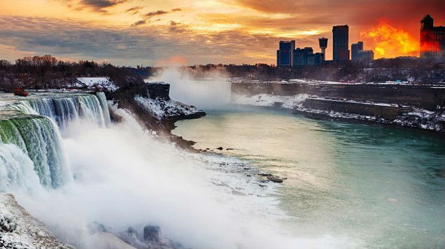 Другой гордостью и знаменитостью США среди природных достопримечательностей является Ниагарский водопад, который находится на самой границе Канады (провинция Онтарио) и США (штат Нью-Йорк). Кстати, сам водопад состоит из серии водопадов, красотой которых можно насладиться как с кораблей, курсирующих чуть ли не впритык к водопаду и с множества смотровых площадок, но и с вертолета или с воздушного шара, а также с канатного моста. Вечером водопад подсвечивают, и тем самым создается поистине сказочный вид.