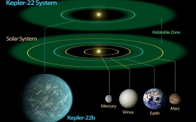 Планета Kepler-22b была открыта 5 декабря 2011 года и названа в честь открывшего ее аппарата Kepler. Планета вращается вокруг звезды Kepler-22, которая похожа на наше Солнце. Отличием является больший вес Солнца по сравнению с Kepler-22.