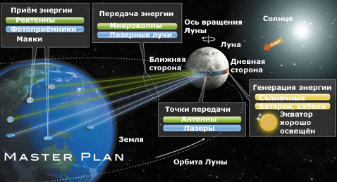 Передачу энергии будут обеспечивать несколько 20 километровых тарелок и мощной лазерной техники. На Земле также будут построена серия аппаратов приемников оснащенных радиомаяками, которые будут обеспечивать точную передачу энергии, несмотря на вращение Земли и Луны.
