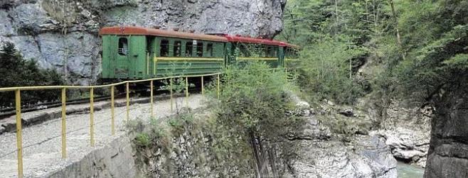 В ущелье расположена узкая железная дорога, построенная еще в 30–х годах 20 века. Ранее по ней передвигались из Мизмая в Гуамку. В 2010 году был крайне сильный оползень, и большая часть дороги была разрушена. В данный момент по ущелью ездит туристический открытый прогулочный вагон.