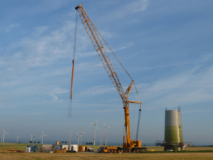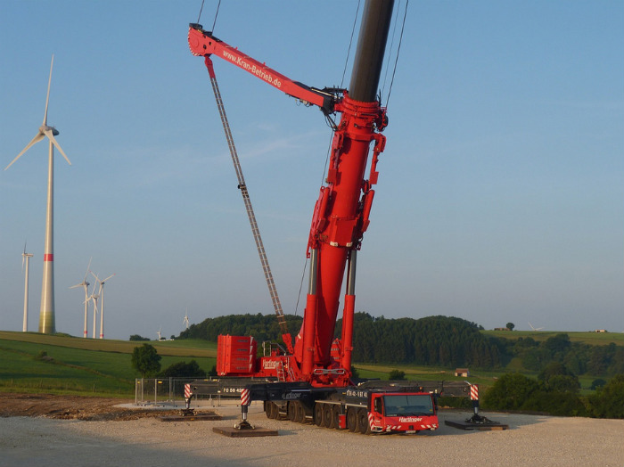 Бывают случаи, когда в отдаленных районах необходимо поднять на большую высоту тяжеленные конструкции. К примеру, нужно установить огромные лопасти ветряного генератора на опору. В таком случае не обойтись без самого мощного и самого длинного в мире передвижного колесного подъемного крана Liebherr LTM 11200-9.1 от немецкого производителя Liebherr.