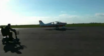 Скоростные качества мощного «мопеда» были продемонстрированы на одном из британских аэропортов, когда Колин проехал вместе с взлетающем самолетом.