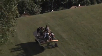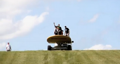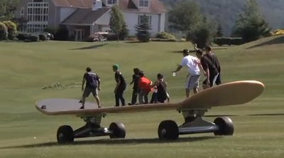 Ого! Вот это доска! Я даже себе представить не могу, как ей управлять, одному явно не справиться, а если с такого с горки начать ехать, это же жесть, вообще не остановить его никак, только ждать пока сам остановится